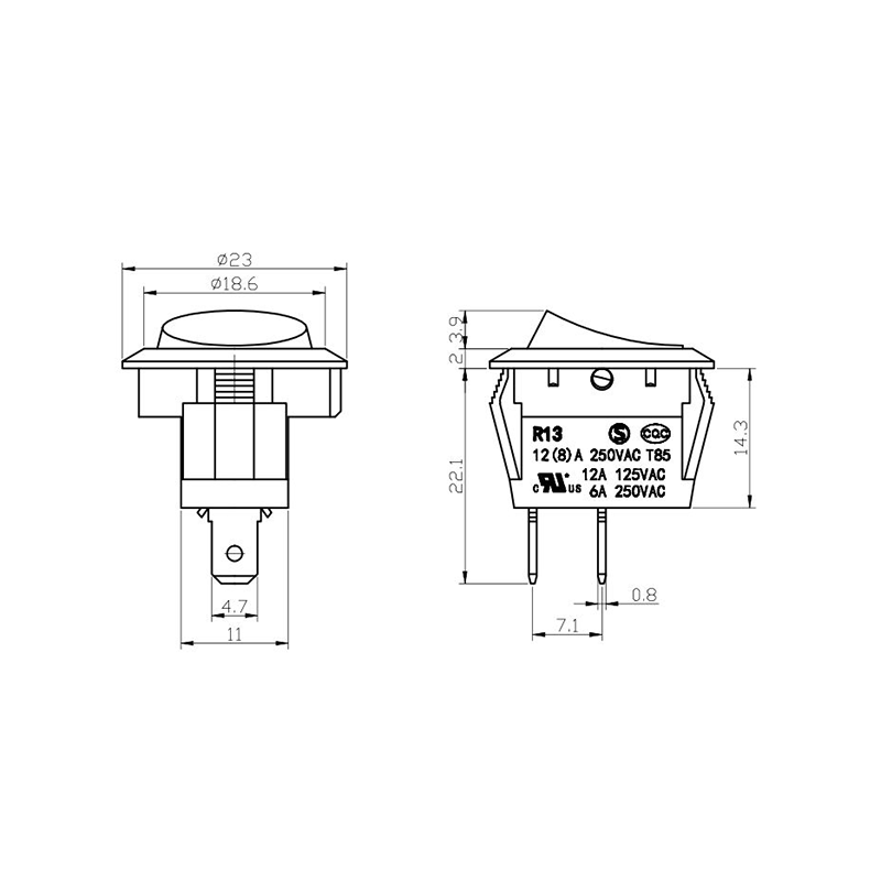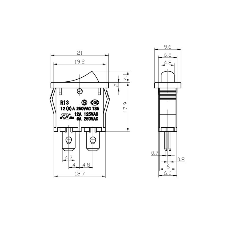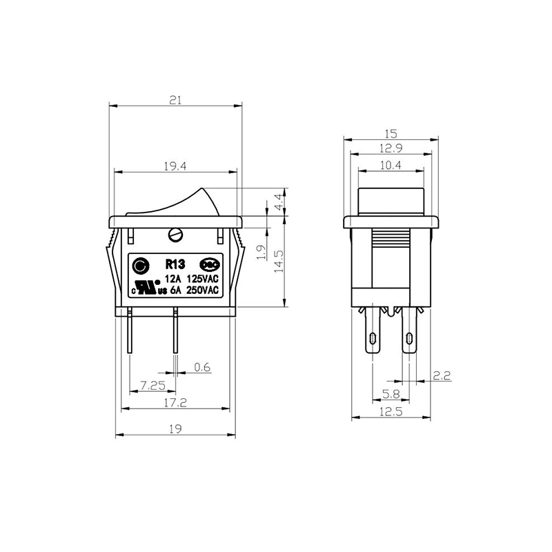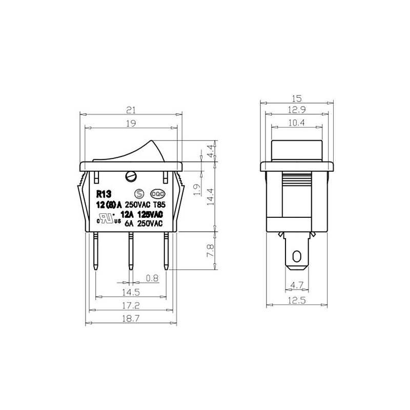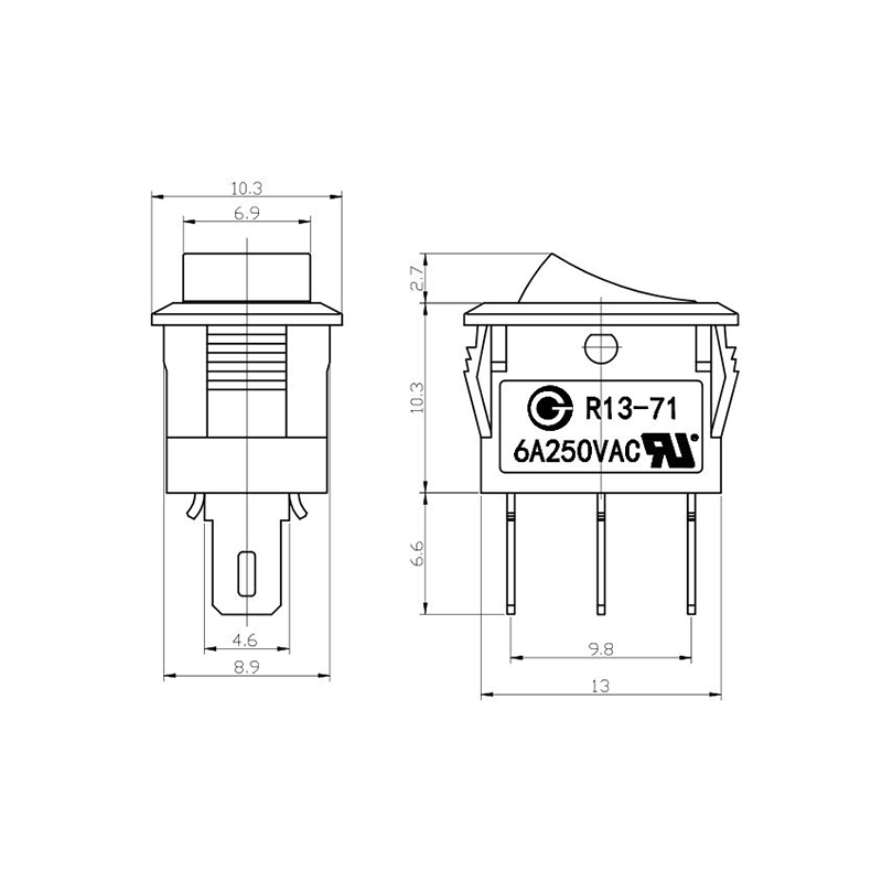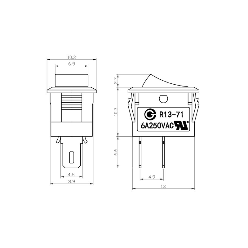 Is lasc rocker dlúth agus versatile é an tsraith R13-13 Trealamh Oifige Rocker Switch atá deartha go sonrach le haghaidh fearais bheaga agus trealamh oifige. Ceadaíonn a fhachtóir foirm dhlúth comhtháthú painéil éasca i bhfeistí beachtais. Tá an tithíocht déanta as plaisteach lasair-retardant ard-neart, a chinntíonn marthanacht faoi úsáid go minic agus coinníollacha ard-teocht. Tá an actuator rocker deartha go heirgeanamaíochta, rud a chumasaíonn scoránú mín gan mórán iarrachta.