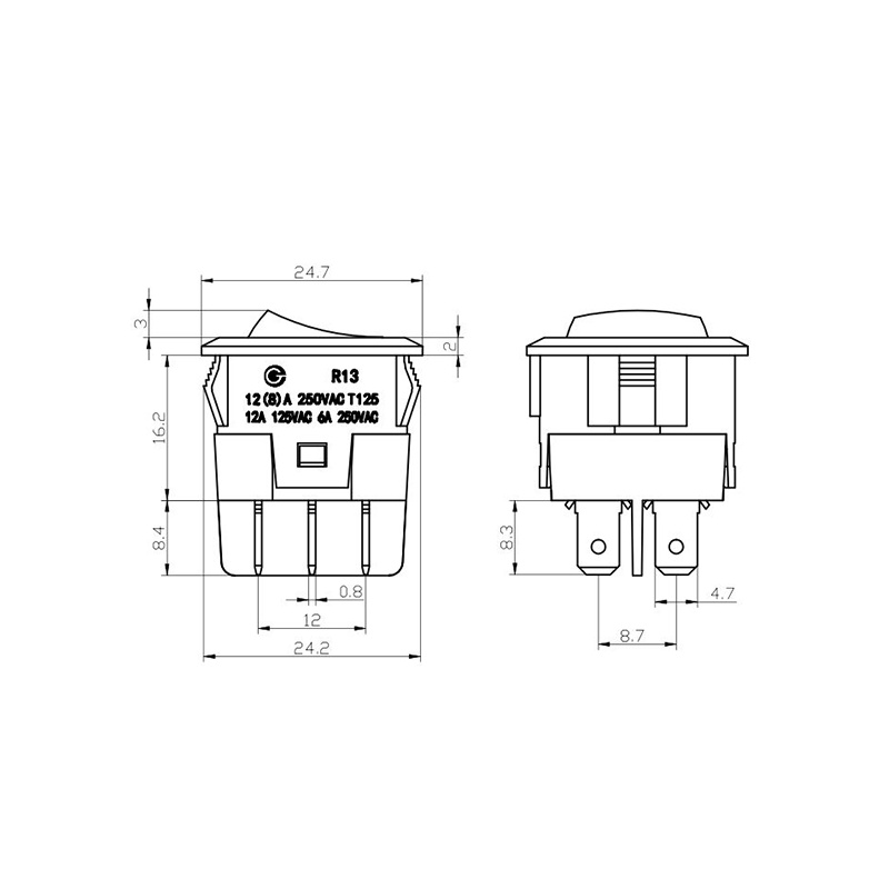 I dtéarmaí feidhmiúlacht, soláthraíonn an tsraith R13-13 leagan amach críochfoirt 2-bioráin agus 3-bioráin araon, ag tacú le cumraíochtaí ciorcaid SPST (Single Pole Single Throw) agus SPDT (Single Pole Double Throw) chun freastal ar riachtanais éagsúla dearaidh leictreachais. Déanann na marcálacha soiléire "0/1" ar an actuator é a oibriú go héasca, agus cuireann roghanna dath dubh agus bán ar chumas comhsheasmhacht amhairc le dearadh an táirge deiridh.